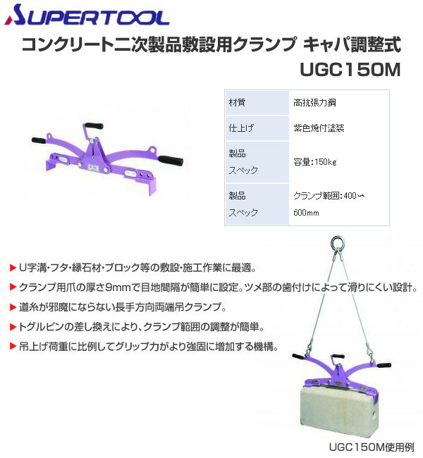 スーパーツール(SUPERTOOL) コンクリート二次製品敷設用クランプ キャパ調整式 UGC150M 【送料無料】