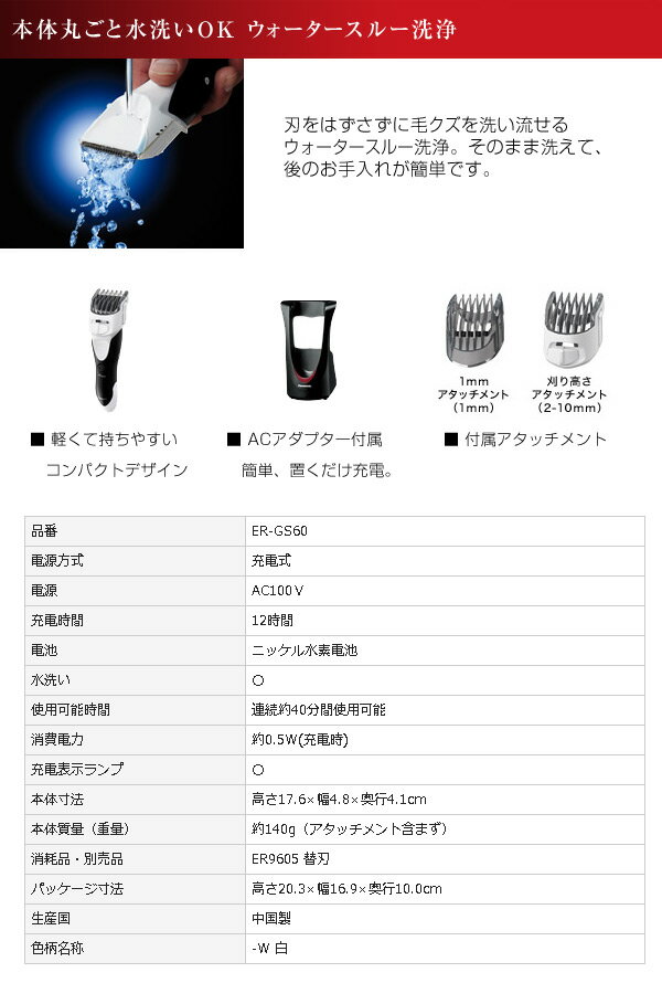 パナソニック(Panasonic) ボウズカッター ER-GS60-W 白 電動バリカン 電気バリカン 坊主カッター 【送料無料】